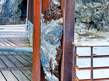 Cette série a été créée sur plusieurs mois durant 2017/2018 et a été poursuivie en 2021. J'ai débuté en prenant des photos de mon corps en Ariège, inspiré par l'homme de Vitruve de Léonard de Vinci, le Pentacle symbole de perfection et d'harmonie, ainsi que des postures de mort subite observées à Pompéi lors d'un voyage antérieur. Ces dernières m'ont particulièrement captivé par leur expressivité et leur richesse picturale, en lien avec l'œuvre d'Egon Schiele. Tous les autres éléments utilisés proviennent de la nature. Il s'agit de photos prises du fleuve Garonne, réalisées à une certaine période de l'année, lorsque les mousses sur les galets immergés prennent des teintes vibrantes grâce à la nature.