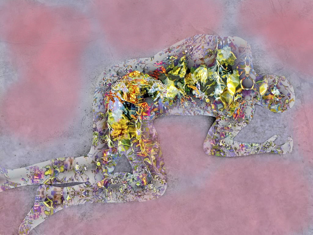 This series was carried out over several months in 2017/2018 and then continued in 2021. I started by taking pictures of my body in Ariege with Leonardo da Vinci’s Vitruvius man in mind, the Pentacle symbol of perfection and harmony and postures of sudden death observed in Pompeii in a previous trip. The latter particularly interested me in their expressive and pictorial sides, in reference to Egon Shiele. All other elements used are of organic origin. These are photos from the Garonne river that I made at a certain time of the year, when the mosses on the immersed pebbles are naturally colored by nature.
