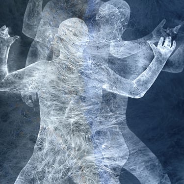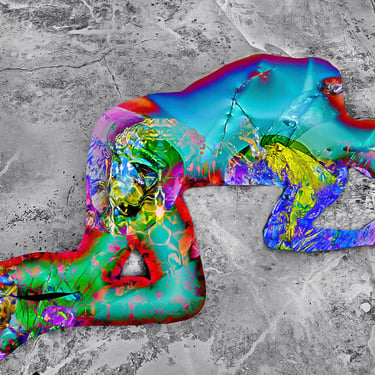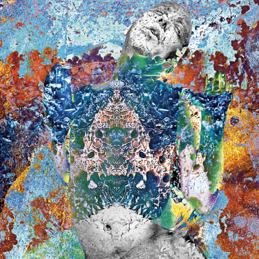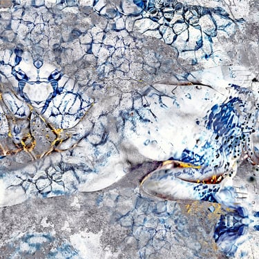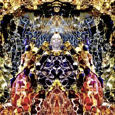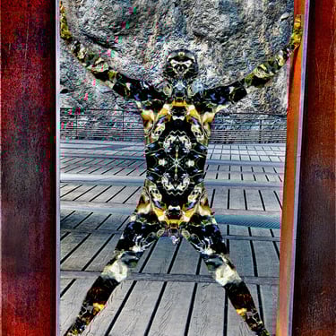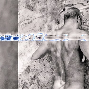 Cette série a été réalisée sur plusieurs mois en 2017/2018 puis continuée en 2021. J'ai commencé par faire des photos de mon corps en Ariège avec en tête l'homme de Vitruve de Léonard de Vinci, le Pentacle symbole de perfection et d'harmonie et des postures de mort subite observées à Pompéi dans un voyage précédent. Ces dernières m'ont tout particulièrement intéressé par leurs côtés expressifs et picturaux, en référence à Egon Shiele. Tous les autres éléments utilisés sont d'origine organique. Ce sont des photos issues du fleuve Garonne que j'ai effectuées à une certaine époque de l'année, quand les mousses sur les galets immergés sont naturellement colorées par la nature.
