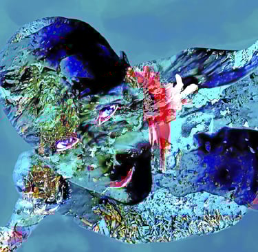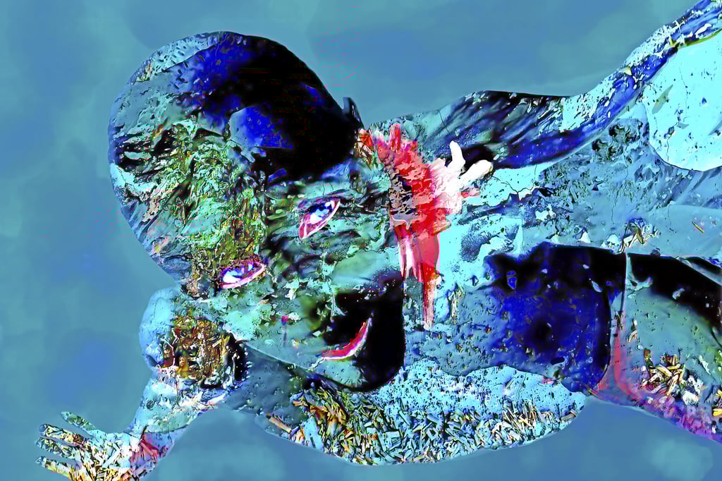 J'ai débuté mes recherches sur ce sujet après avoir rassemblé les matériaux photographiques l'année précédente, incluant des photos de la nature capturées dans une zone saline près de Narbonne (France), ainsi que des poses humaines qui ont été combinées et retravaillées en différentes couches, avec l'objectif de créer une réalité alternative.