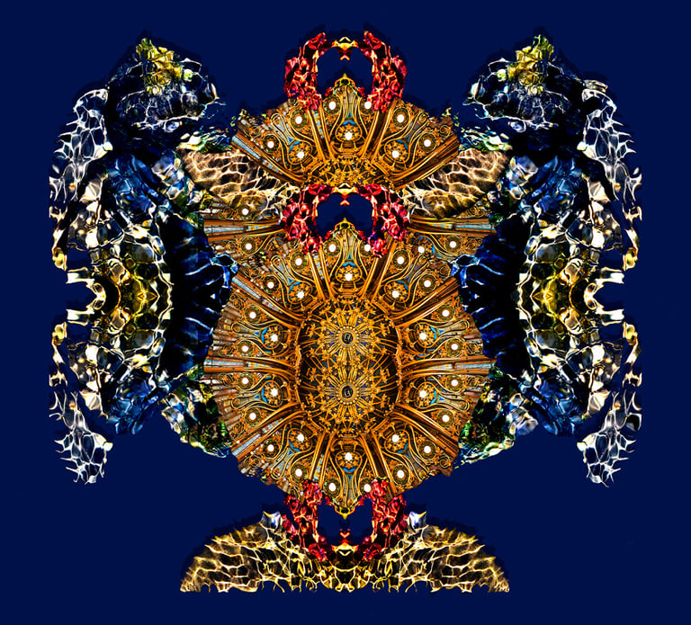A colourful pagan symbolism, contemporary testimony of another vision of nature. The myth of nature is one of the first manifestations of human intelligence, it predates any religious idea, it is the product of a psychological activity analogous to ours but which was only embarrassed by neither experience nor the logical habits of the mind. Primitive man has no sense of the divine, but on the other hand, his entire life is bathed, so to speak, in the supernatural. (Created from the series Kairos)