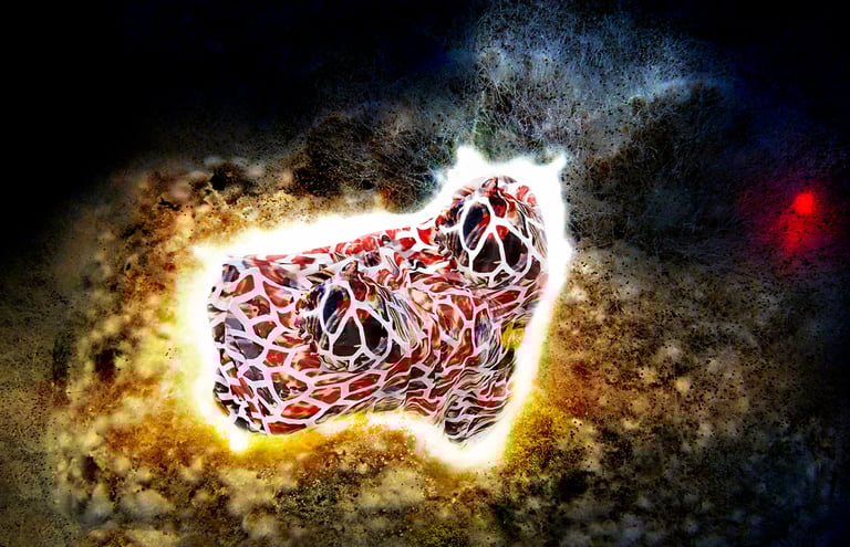 The double series: "Man of Niaux" and "Vésuvio" illustrates this process, a fragile moment where everything is played out. Consciousness becomes incarnate and then, sometimes brutally detached from the body to return to nothingness. A metaphysical photographic tale begins in Ariege ( french mountains) at the entrance to the Niaux's cave . Step by step a being is incarnate, a form of primitive consciousness awakens in him, until he feels power and the energy that dwells in him and pushes him to exist as such. This same consciousness also brings him doubts, worries about his own future and that of his fellows, proof of his nascent humanity.Finally, through the game of chance and necessity, a telluric event abruptly reduces its existence to ashes, confirming the feeling of its own fragility. Consciousness flees again into the "great whole", through the mystery of decorporation.