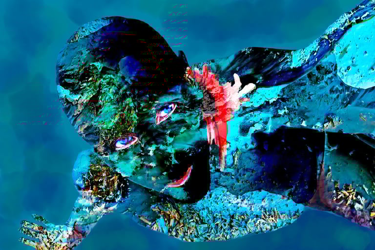 Réalisé à partir de la série Kairos, une interprétation symbolique des photos prisent dans le lit de la Garonne. Un symbolisme païen haut en couleurs, témoignage contemporain d'une autre vision de la nature. Le mythe de la nature est une des premières manifestation de l'intelligence humaine, il est antérieur à toute idée religieuse, c'est le produit d'une activité psychologique analogue à la nôtre mais que n'embarrassaient seulement, ni l'expérience, ni les habitudes logiques de l'esprit. L'homme primitif n'a nullement le sentiment du divin, mais, par contre, sa vie entière baigne pour ainsi dire, dans le surnaturel.