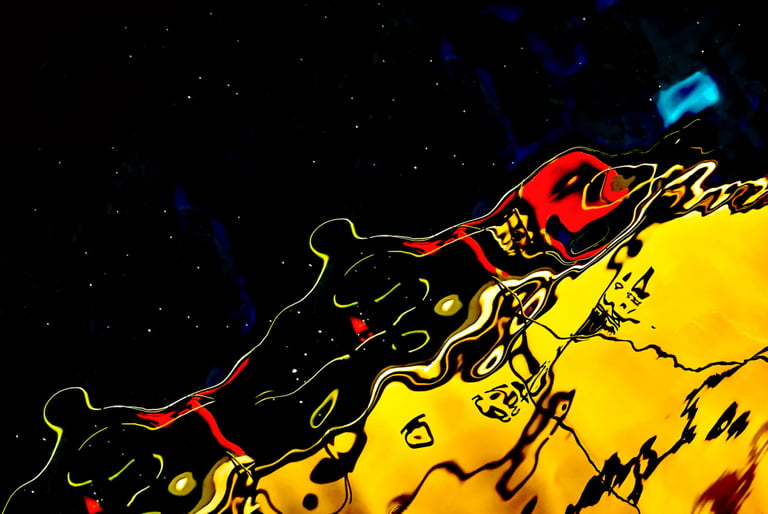 This series is a work around the reflections of boats in the port of Mahon in Menorca (Balearic Islands). At sunset, the light is parallel to the surface of the water and particularly illuminates the hull of the boats, returning an image colored and distorted by the waves of the port. The forms thus generated by the celestial light invite to reverie and extrapolation of the real.