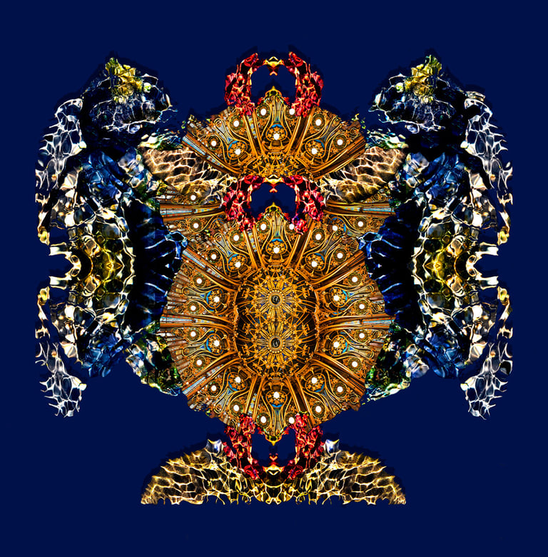 Made from the Kairos series, a symbolic interpretation of the photos taken in the bed of the Garonne. A colorful pagan symbolism, contemporary testimony of another vision of nature. The myth of nature is one of the first manifestations of human intelligence, it predates any religious idea, it is the product of a psychological activity analogous to ours but which only embarrassed neither the experience nor the logical habits of the mind. Primitive man has no sense of the divine, but, on the other hand, his whole life bathes, so to speak, in the supernatural.