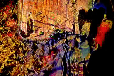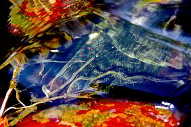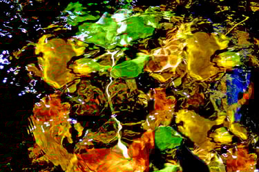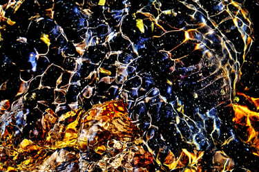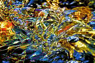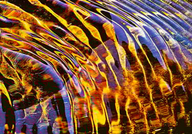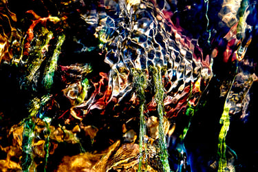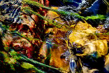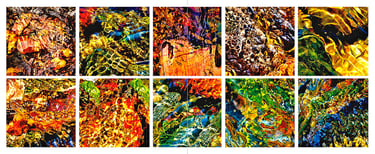 L'idée de cette série a commencé à germer en 2017 près du fleuve Garonne à la suite d'une rêverie sur ses berges. Il m'a fallu revenir au même endroit les deux années suivantes pour compléter et affiner les prises. Ce lieu est unique, il ne livre ses trésors qu'à une certaine époque de l'année quand toutes les conditions sont réunies. Les couleurs sont naturelles, elles sont produites par des micro-organismes qui vivent sur les galets et qui se développent à la fin de l'été quand le niveau de l'eau a baissé et qu'il a fait chaud pendant plusieurs mois. J'aime cadrer sur le vif mon sujet, et j'ai dû faire parfois quelques acrobaties dans le flot du courant pour arriver à mes fins.