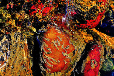 The idea for this series began to germinate in 2015 near the Garonne River following a daydream on its banks. I had to go back to the same place for the next two years to complete and refine the catch. This place is unique, it delivers its treasures only at a certain time of the year when all the conditions are met. The colors are natural, they are produced by microorganisms that live on the pebbles and that develop at the end of the summer when the water level has dropped and it was hot for several months. I like to frame my subject on the spot, and I have sometimes had to do some acrobatics in the flow of the current to achieve my ends.
